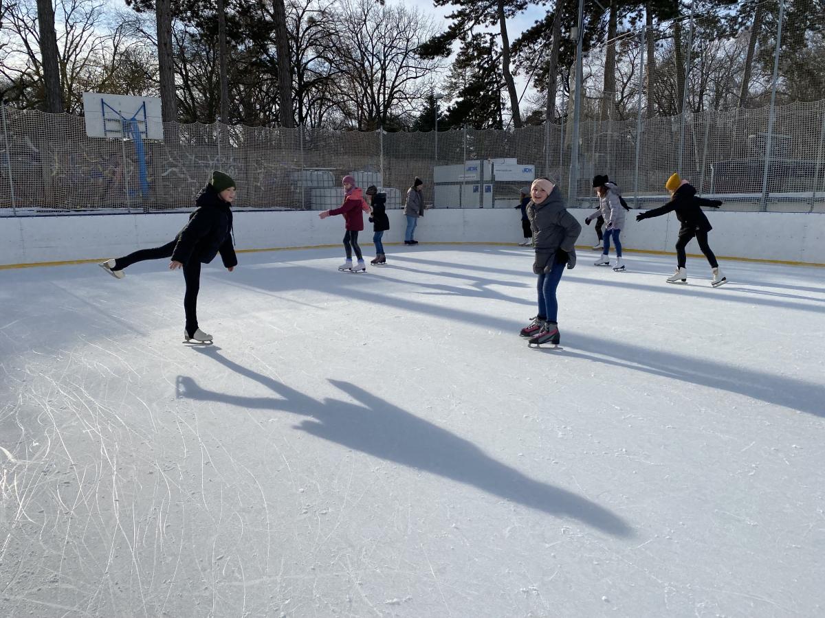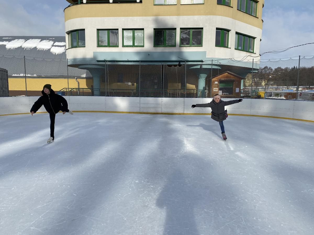Když zrovna z kluziště není brouzdaliště, vyráží naši tělocvikáři s dětmi za bruslením…