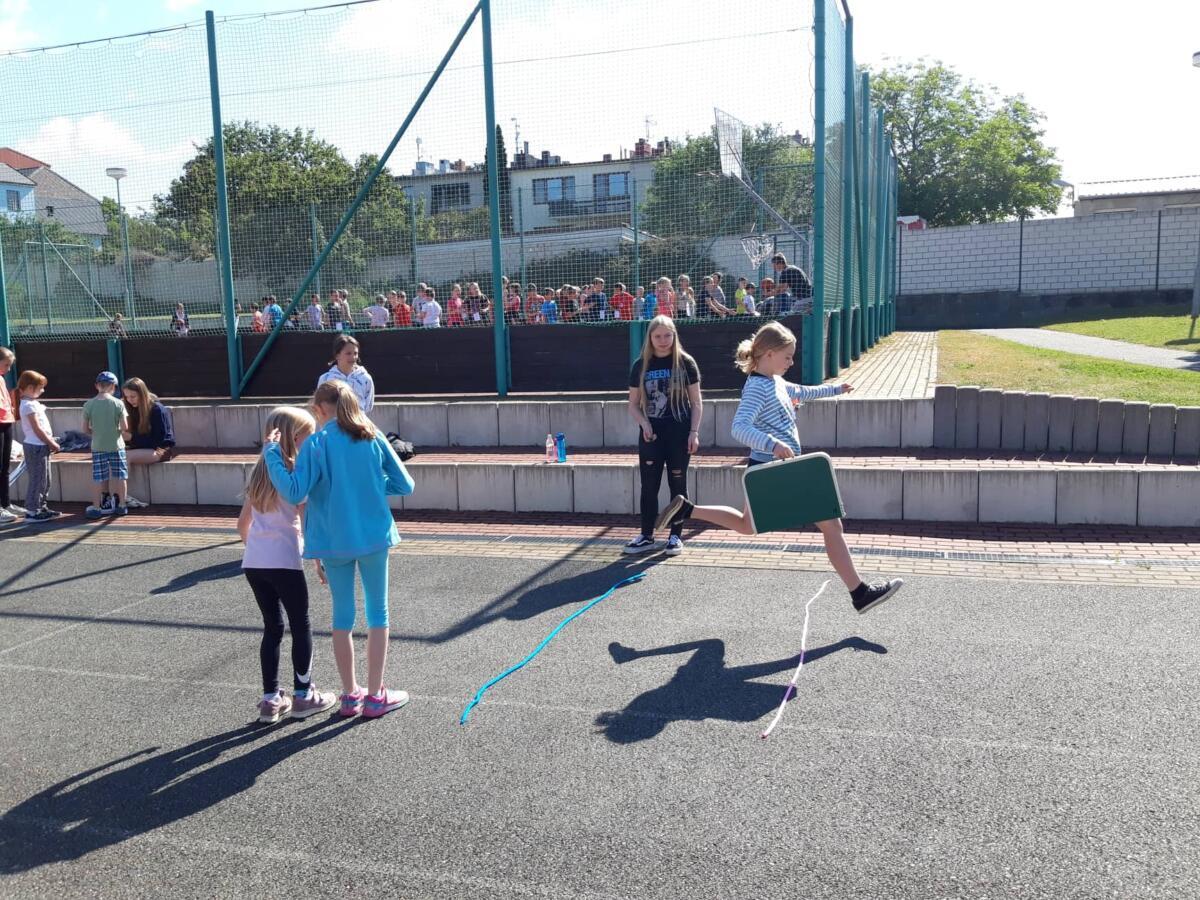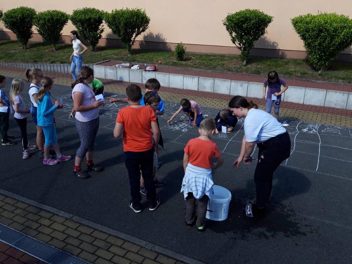I u nás ve škole proběhly oslavy Dne dětí. Žáci devátého ročníku si připravili pro děti 1. stupně zábavné dopoledne plné her a soutěží.