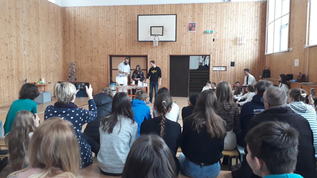 Den na soutěži “Hledáme nejlepšího mladého chemika ČR” v Brně si děvčata z 9.C náramně užila. Zážitek si odnáší především z tradiční chemické show v podání pedagogů a žáků chemické průmyslovky. Do regionálního finále (33 postupových míst) se bohužel o 1 bod nevešla Kristýnka Gasnárková, která tak skončila na 34. místě. Nela Horňáková vybojovala krásné 41. místo a Lucie Dlouhá 51. místo ze 185 soutěžících.