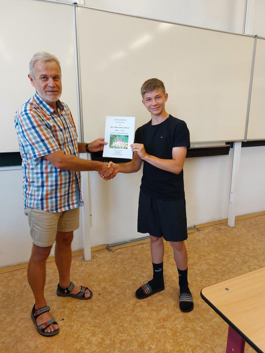 Na vedoucí příčce se Šošoni uvelebili již v pololetí školního roku a od té doby si svou pozici hájili až do vítězného konce. Letošní ročník celoroční ekologické soutěže Ekotřída byl jubilejní, neb se konal již popáté, a výjimečný tím, že jej poprvé vyhrála třída z druhého stupně. Až dosud si vavříny odnášely třídy mladších žáků. Pomyslné stříbro vybojovala 3.A s minimálním náskokem před bronzovou 3. B. Podobná situace byla i na dalších místech výsledkové tabulky, vždy rozdíl několika málo bodů. Tak velká vyrovnanost svědčí o tom, že se všechny třídy velmi snažily a děti odváděly v průběhu roku skvělou práci. Všem patří velký dík a vítězům gratulujeme!