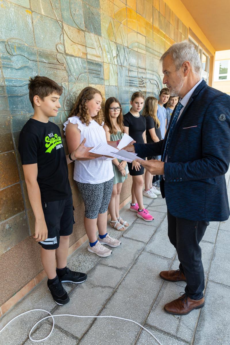 Rok se s rokem sešel a naše škola vypouští z vrat další dávku deváťáků. Pan ředitel je oficiálně vyřadil z inventáře, zástupci jednotlivých tříd přednesli projevy na rozloučenou, zazněl potlesk a bylo hotovo. Pak už jenom rozdat vysvědčení, poučit o bezpečnosti, vynést lavice a hurá pryč! Snad se v září všichni, zotavení a zdraví, zase potkáme… Teda kromě deváťáků, ti obveselí jiné šťastlivce 😉