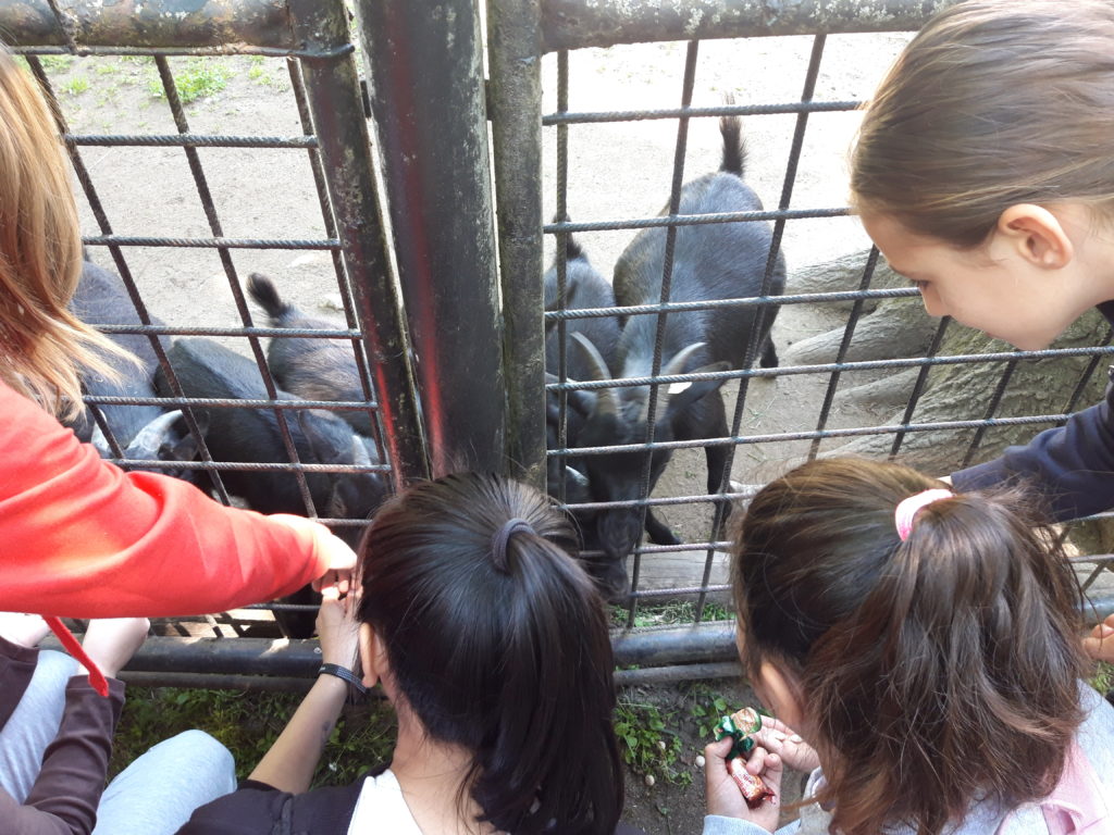 Z útulku jsme přešli do zoologické zahrady, kde nás čekala komentovaná prohlídka. Navštívili jsme pavilon akvárií, výběhy tygrů, seznámili se s rodinkou lvů. Pohladili jsme si agamu vodní a nakrmili kozy a ovce. U všech chovatelů bylo zřejmé obrovské nadšení a láska k této práci – ať už při přednášce o Indonésii, či komentovaném krmení vlků hřivnatých, malých opic a šimpanzů.