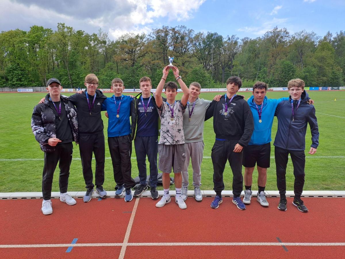 Krásného úspěchu dosáhli žáci naší školy v okresním kole 55. ročníku atletické soutěže školních družstev Poháru rozhlasu s Českou spořitelnou, když v konkurenci třinácti družstev zvítězili, získali krásný pohár a medaile za 1. místo. Přes mnohé vynikající výkony v jednotlivých disciplínách je třeba pochválit všechny členy tohoto družstva, kteří svými výkony přispěli k tomuto výsledku. Příkladně reprezentovali a o postup do krajského finále se dle abecedy zasloužili tito žáci: Fabián Dubina, Radim Fridrich, Jan Jelínek (všichni IX. C), Radek Jelínek (VIII. C), Damien Křešťák (IX. C), Tomáš Kuzma (VIII. C), Lukáš Kvaltin (IX. A), Daniel Měsíček (IX. C) a Vítek Prágr (VIII. A).