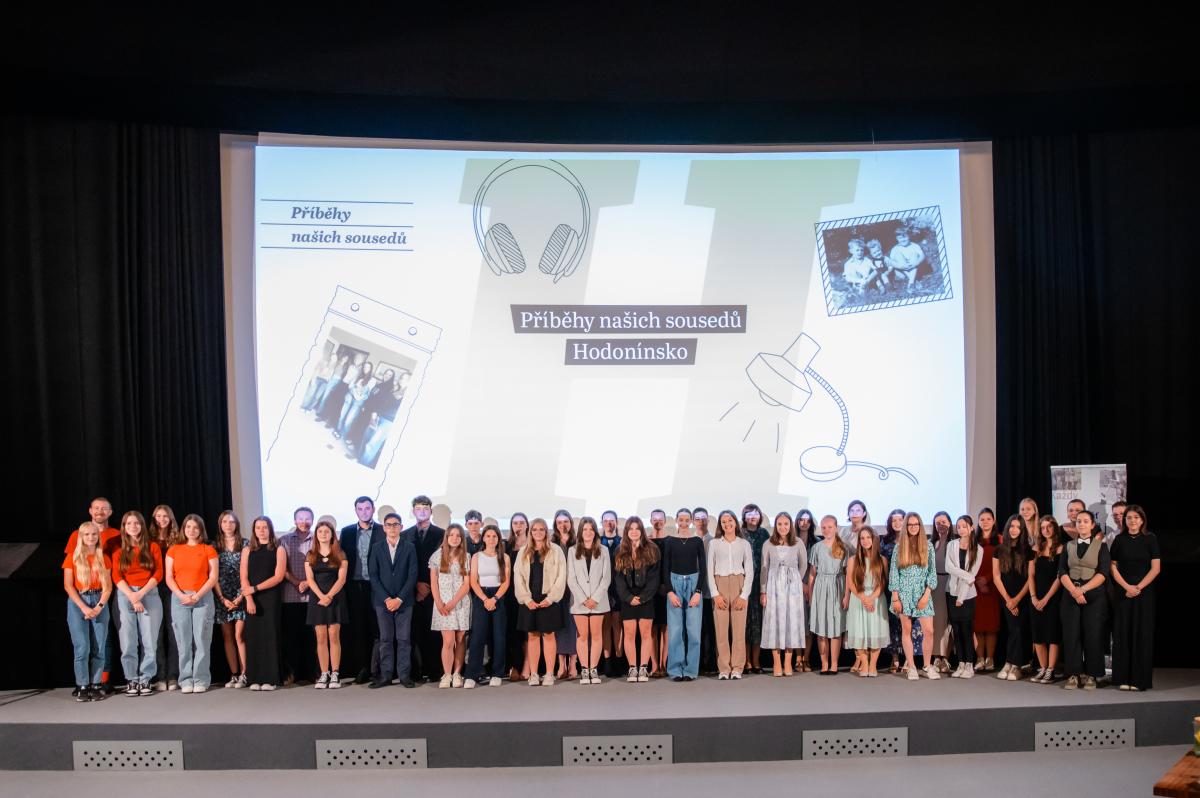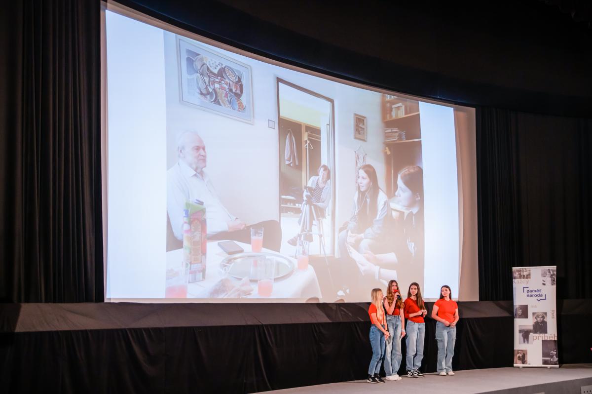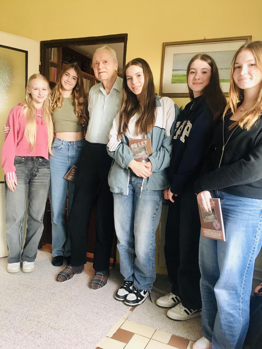 Po loňském průzkumu bojem jsme letos vrhli do projektu deváťácký dream team ve složení Anička Navrátilová, Anet Šimečková, Nela Šimečková, Anežka Zapletalová a Diana Šimoníková. Holky si vybraly pamětníka Evžena Řezáče – doktora a celoživotního skauta. Vytvořily rozhlasovou reportáž, životopis a závěrečnou prezentaci. To vše bylo umístěno na stránky Paměti národa a následně svůj projekt holky odprezentovaly na závěrečné prezentaci v kině Panorama 11. června. Kromě toho si odnesly spoustu praktických zkušeností a také zážitky ze setkání s obdivuhodným člověkem. Všechno zvládly skvěle, protože jsou skvělé!