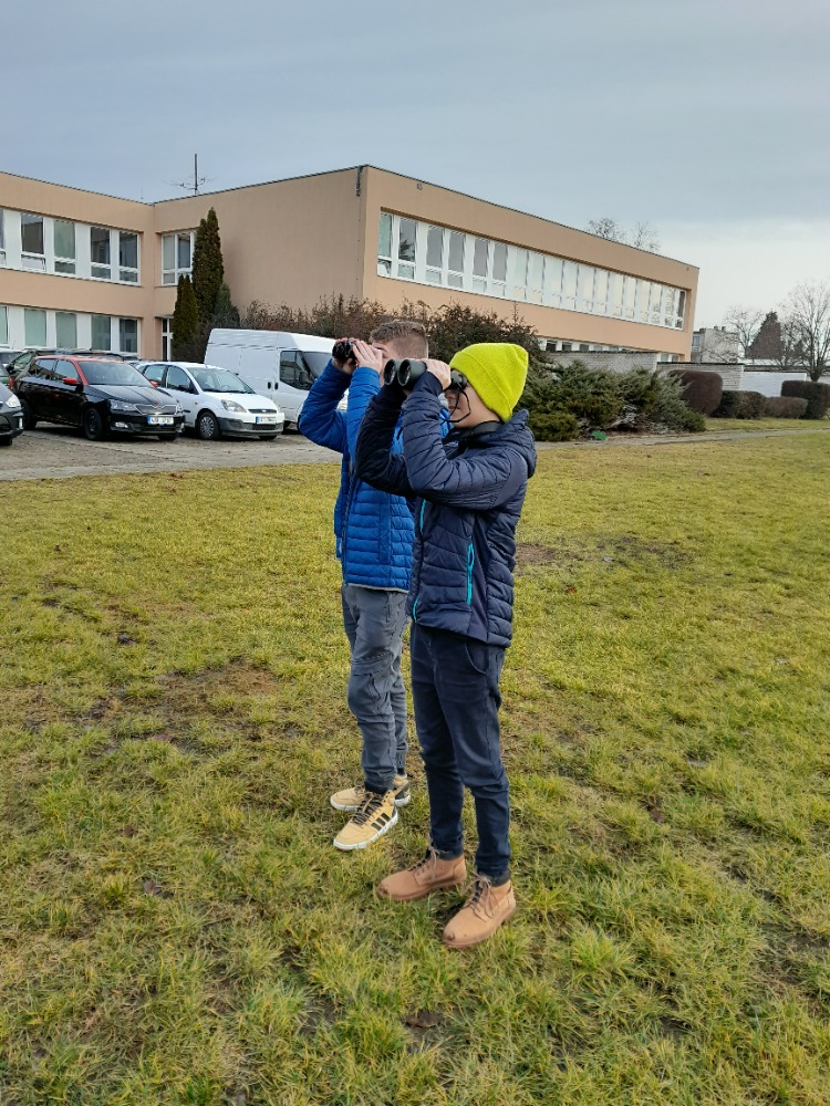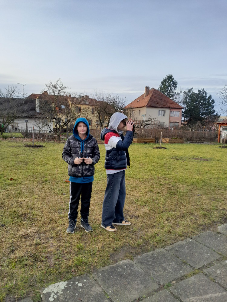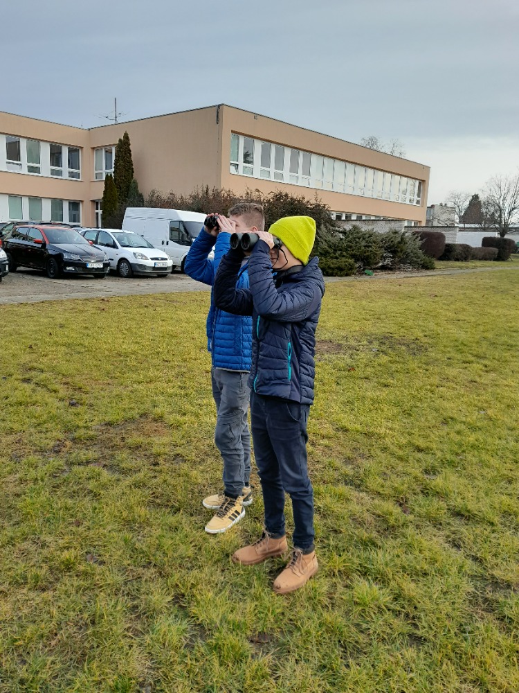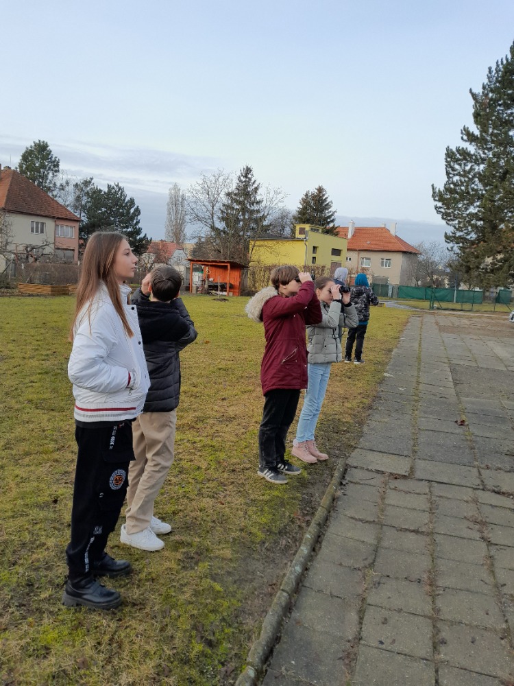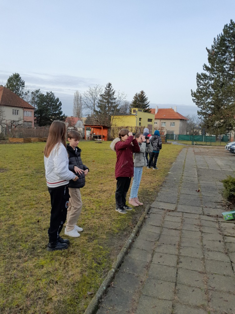 Ptačí hodinky, celostátní akce na sčítání ptáků na krmítcích, jsme se zúčastnili počtvrté. Po družině a ekotýmu se letos iniciativy chopili sedmáci pod vedením studentů soutěžících v biologické olympiádě a velkých ptačích znalců Adama a Johanese. Zatímco na většině míst pozorují hlavně sýkory, vrabce a kosy, v našem sčítacím území se vždy objeví něco extra. Vloni labutě, předloni krahujec. No a v tomto roce stehlíci, králíčci a budníček. Budníček? Ten přece na zimu odlétá! Tak vidíte, že jsme takový neobvyklý sčítací bod. A kdoví, co přilétne příští rok 😊.