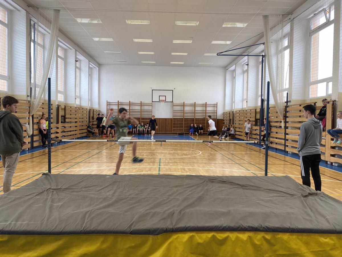Absolutní vítězové školního kola soutěže ve skoku vysokém: Nikola Bystřická (130 cm) a Lukáš Houšť (155 cm).