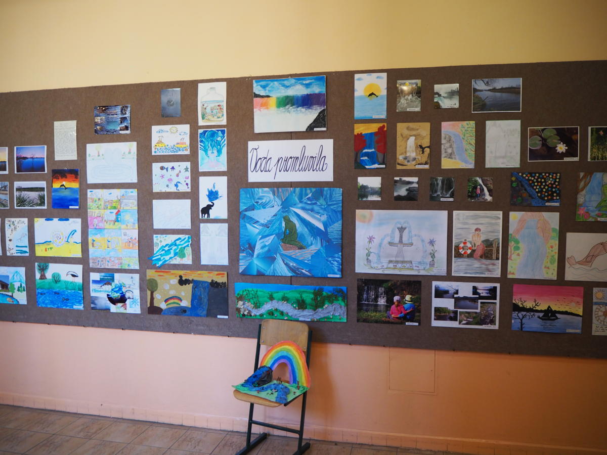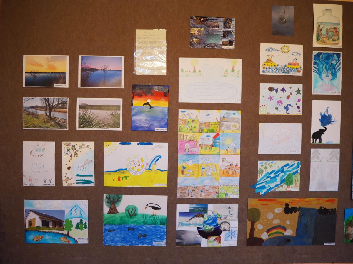 Do soutěže „Voda promluvila“, která byla vyhlášena v měsíci dubnu nejen v souvislosti se svátkem Dne Země, ale také s přípravou směřovanou k získání titulu Ekoškola, přišlo více než 50 prací. Výtvarná díla byla zpracovaná rozmanitým způsobem – perokresbou, vodovou barvou, pastelem, technikou běžné kresby nebo kolážemi dokreslenými tužkou, pastelkou či domalovanými temperovými barvami. Nechyběla samozřejmě ani řada fotografií, u nichž vynikly jak mnohé technické zkušenosti starších žáků, tak i dovednosti rodičů a jejich zkušenosti s úpravami fotografií.