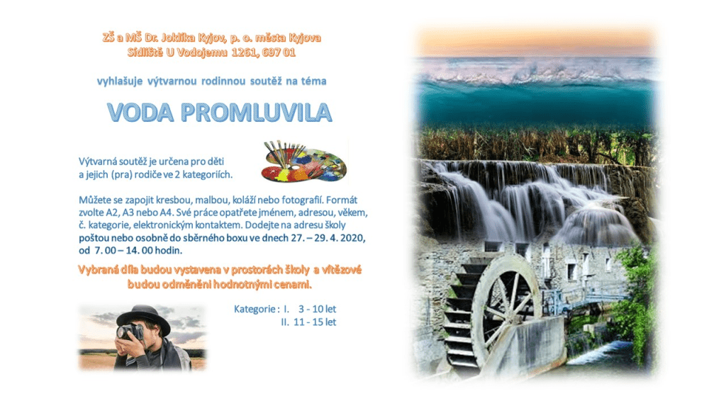 Naše škola vyhlašuje velkou výtvarnou soutěž pro celou rodinu. Pokračujeme tak v činnosti našeho Ekotýmu, jehož snahou je získání titulu Ekoškola. Soutěžní práce budou vystaveny v prostorách naší školy. Budeme rádi, když se soutěže zúčastníte. Více informací najdete na plakátku.