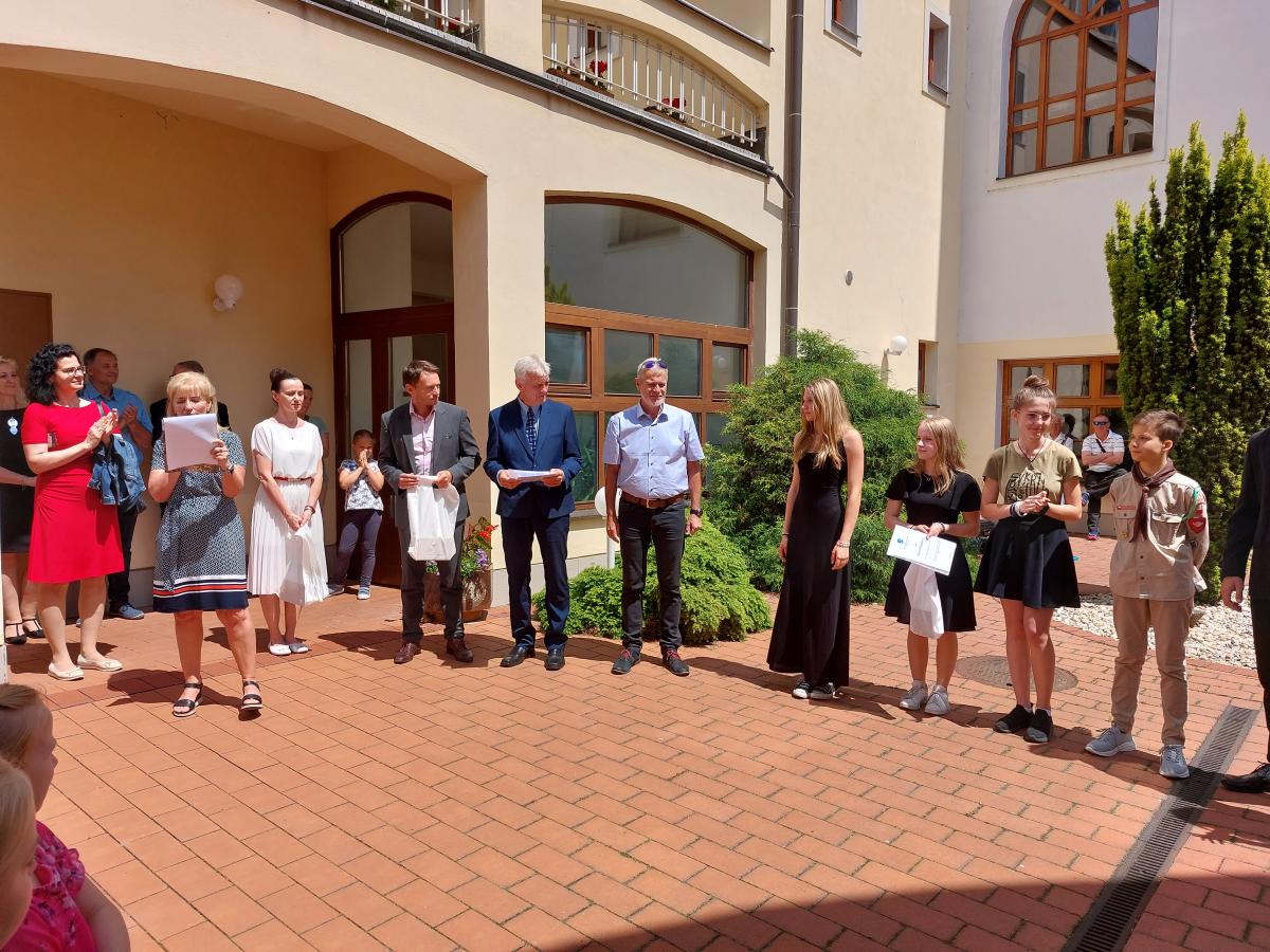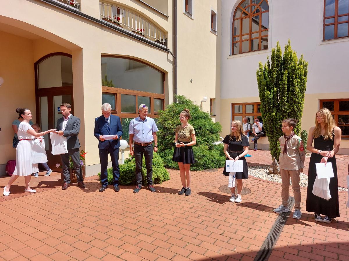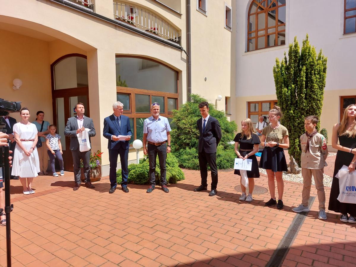 Dvorana radnice se ve čtvrtek 15. června stala místem slavnostního předávání ocenění starosty města úspěšným žákům naší školy, kteří za dlouholeté vzorné výsledky ve výuce, účast v soutěžích, olympiádách, na projektech s tématem péče o přírodu, sportovní a umělecké úspěchy dosáhli mimořádných výsledků.