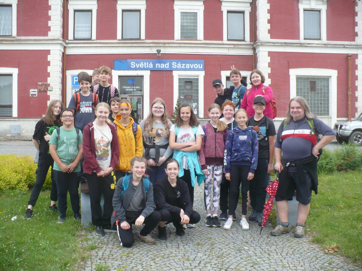 Dvě noci ve spacáku na zemi a téměř dvacítka kilometrů v nohách. Až takovou oběť přinesla výprava Šošonů na Vysočinu k polapení Zelené příšery. Už jste někdy sháněli v rychlíku plném cestujících dýmku či fazoli? A kdy jste naposled čistili zoubky svému spolužákovi či zpívali ukolébavku některé z třídních krásek? Jenže Šošoni všechny záludnosti zvládli bravurně a uprostřed druhé noci se odvážně ponořili do temnot hustého lesa, území obávané obludy. Vedli si opravdu skvěle, byli stateční a mazaní, úspěch se přesto nedostavil. Zlá příšera unikla a místo měšce plného peněz po sobě krom odpudivého zápachu zanechala jen psaní ukryté v kořenech stromů. Ale abyste si nemysleli, že naše velká expedice byla jen o příšeře. Šošoni mimo jiné navštívili záchrannou stanici pro živočichy v Pavlově, pohladili si sovičku, srnečku a lišáka Lukáška, seznámili se s vydrami a spoustou jiných zvířátek. Poznali krásy přírody Posázaví, naučili se sbalit si věci, připravit jídlo, pomoci kamarádovi. Asi stokrát jsme přestupovali, zabloudili v lese, vyfotili se u dva tisíce let starého tisu, svezli se patrovým vlakem a Šimon prodal Elišku za dvacet korun úplně cizí paní. A měšec? Ten za námi nakonec dorazil sám až do třídy. Sice bylo před tím ještě třeba rozšifrovat náročný klíč, ale to Šošoni zmákli s přehledem. Zelená příšera se od té doby neozvala. Buď pukla zlostí, nebo vyhlíží své další oběti. Nejste náhodou na řadě vy? 🙂