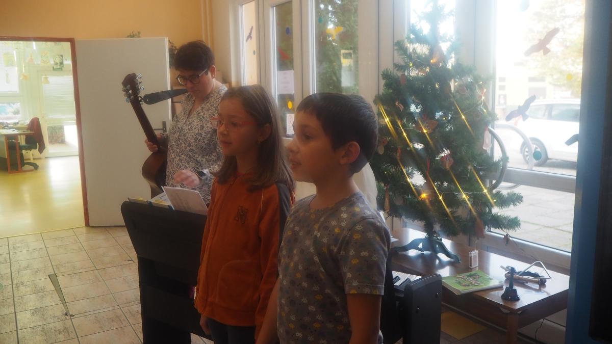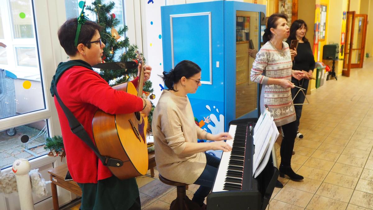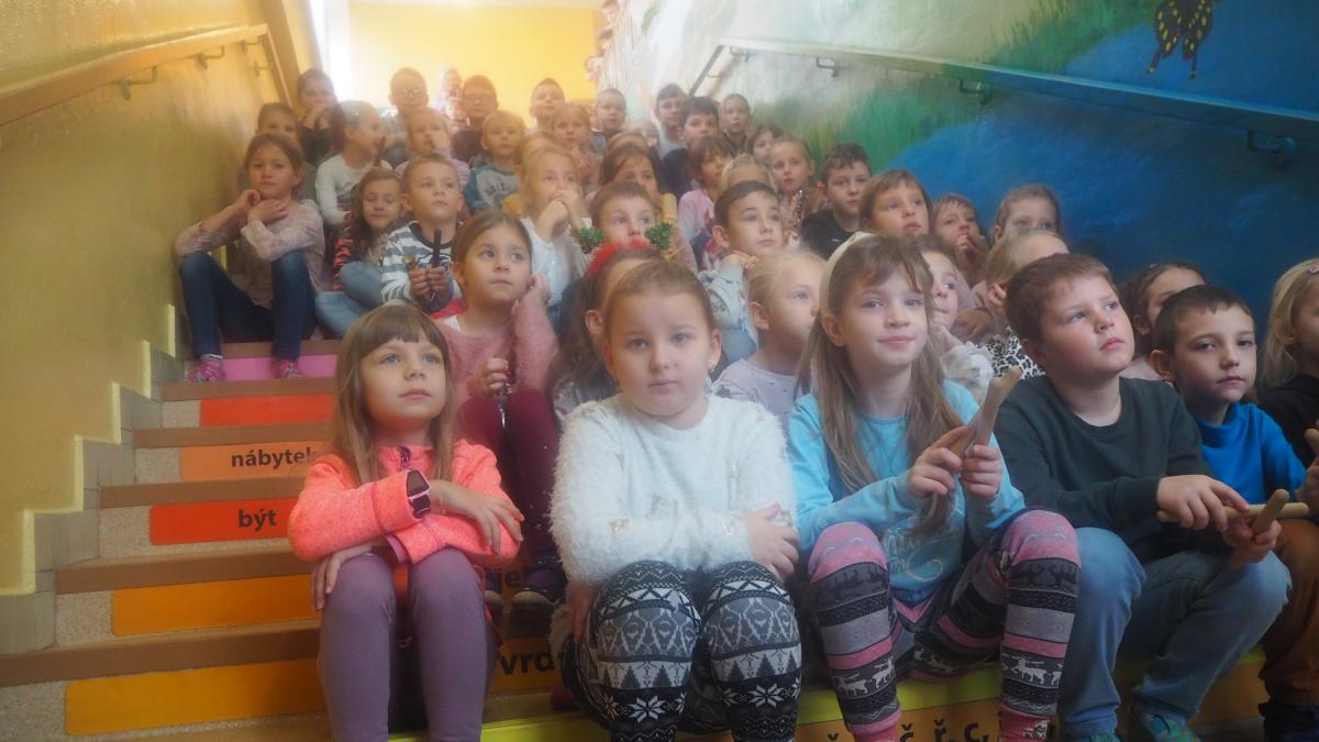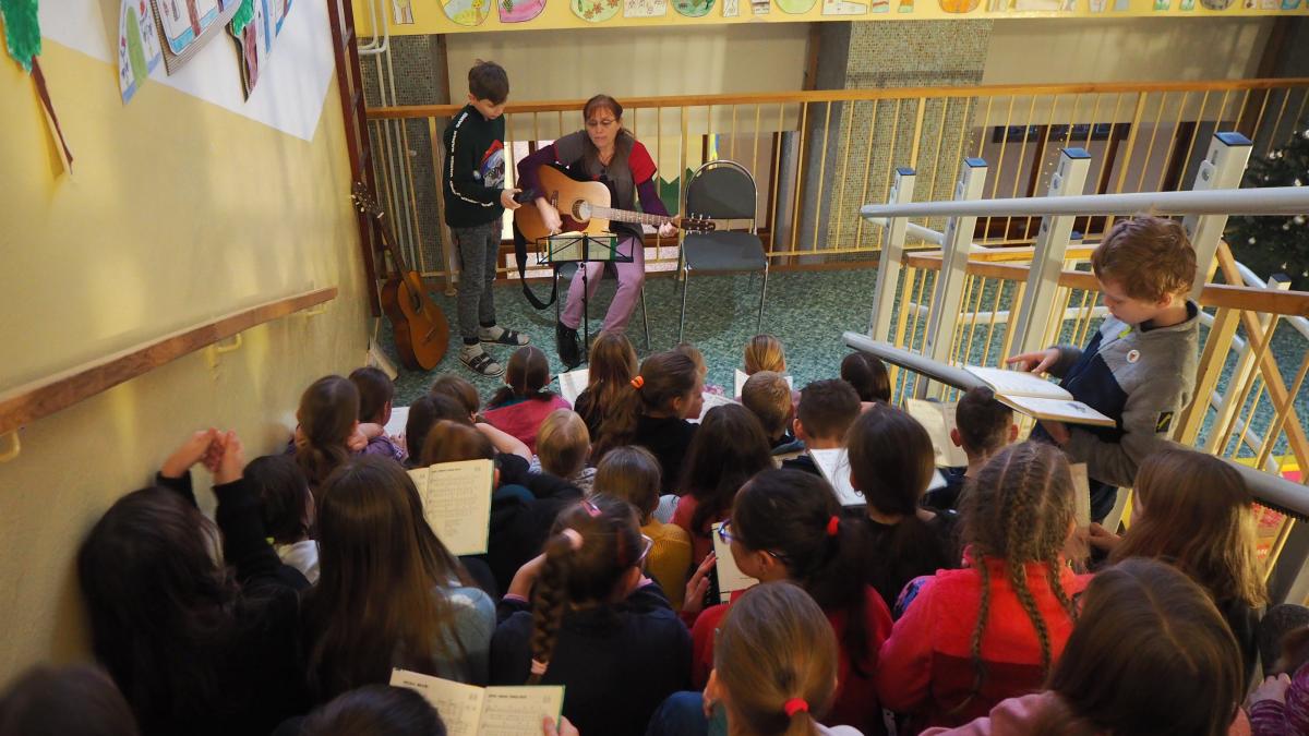V posledním týdnu si společně žáci s vyučujícími zazpívali vánoční písně na schodech prvního stupně.